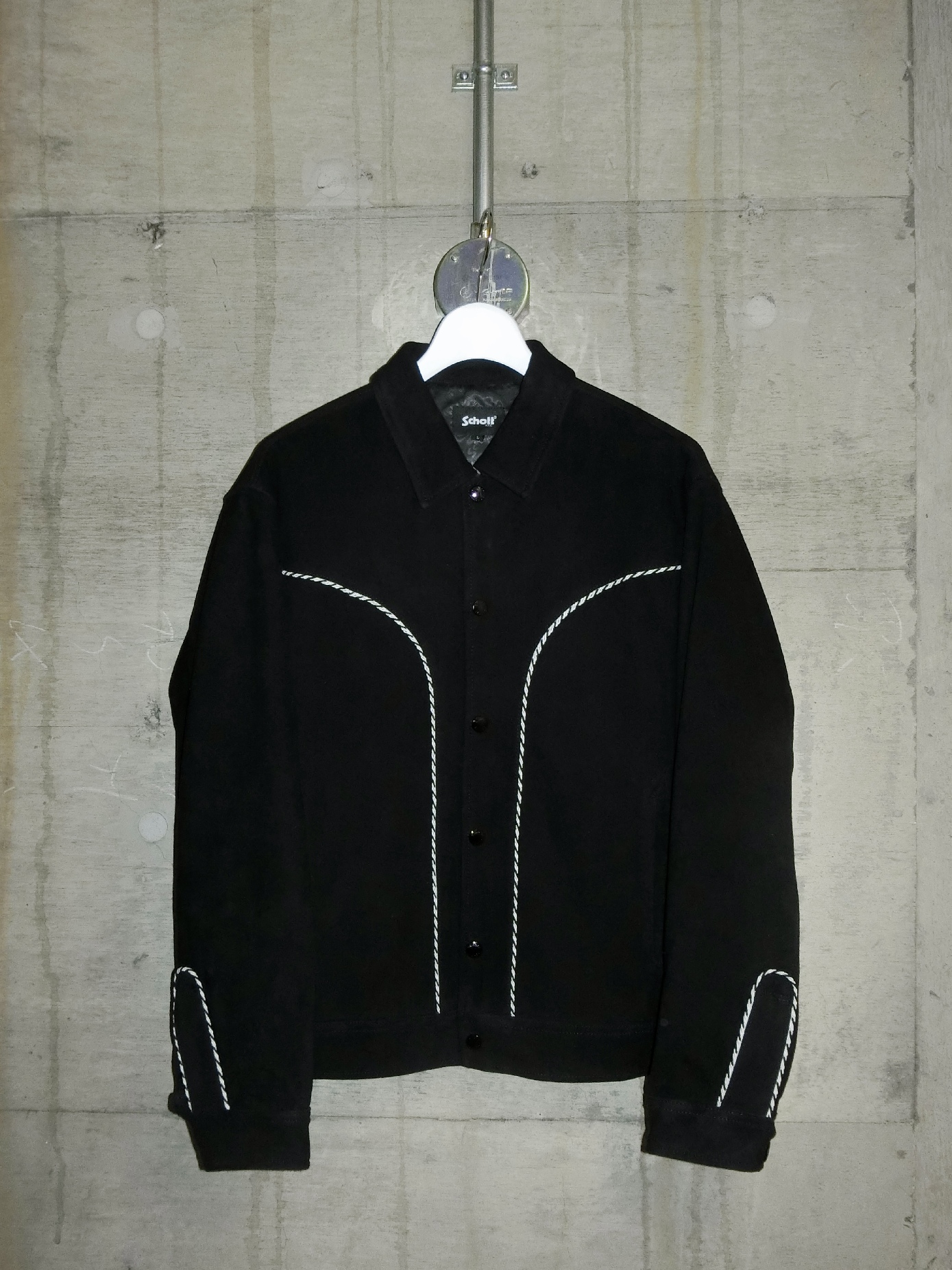 オリジナルのツイストテープを贅沢にあしらったゴートスウェードのウエスタンジャケット。