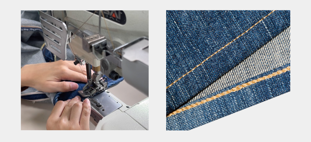 デニムの裾上げの こだわりのひとつに【チェーンステッチ仕上げ】があります。