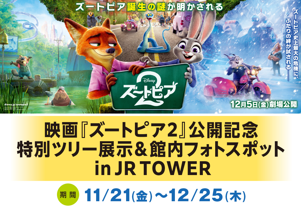 ディズニー最新作『ズートピア2』の公開を記念して、JRタワーにズートピアオリジナルツリー&フォトスポットが登場!
